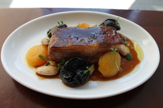 One dish, the mutancene is adapted from the 15th century Ottoman empire, back in the Old World, where people ate lots of mutton. A few liberties are taken in chef Michael Costa’s adaptation. Costa uses lamb, as quality mutton is hard to come by. The meat is braised with grape vinegar. And with boiling, the traditional method of finishing the meat for this dish, Costa turns to something the ancient Turks didn’t have —sous-vide. The word mutancene is derived from the Turkish word tencere which means “big casserole.” This casserole is a fruity one, including stewed apricots and prunes, whole almonds, and fresh grapes. It adds up to exactly what you want in a fruity lamb dish, the richness off the meat spiked with a little bit of acid from the vinegar and complemented by the sweetness of the fall fruits.