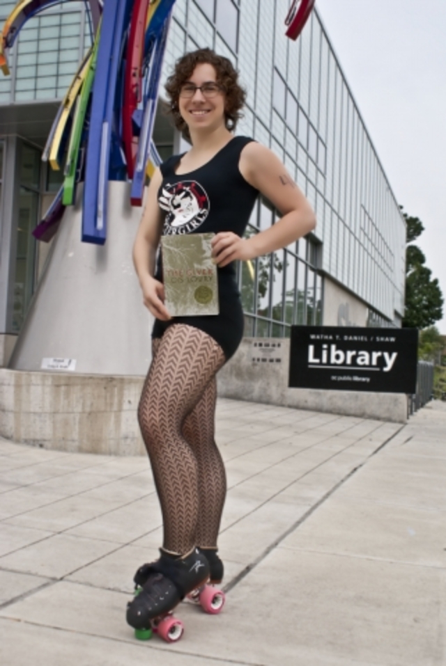 The Oxford Commakaze #408 with The Giver. Photo courtesy DCPL.For Banned Books Week this year, the D.C. Public Library has teamed up with a group that may seem like an unusual ally: the DC Rollergirls.