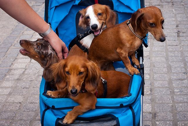 Very cute competitors hang out in a stroller. Photo by Caroline Angelo.