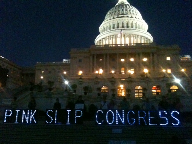 Reader Lane Thompson sends this photo taken in front of the Capitol building last night.