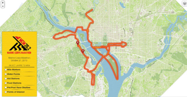 The Washington Monument isn’t the only phallic thing on the National Mall anymore. This map of the 2013 Marine Corps Marathon shows the route along the National Mall totally looks like a penis. And the tip is pointing right at the Capitol Building. Heh.