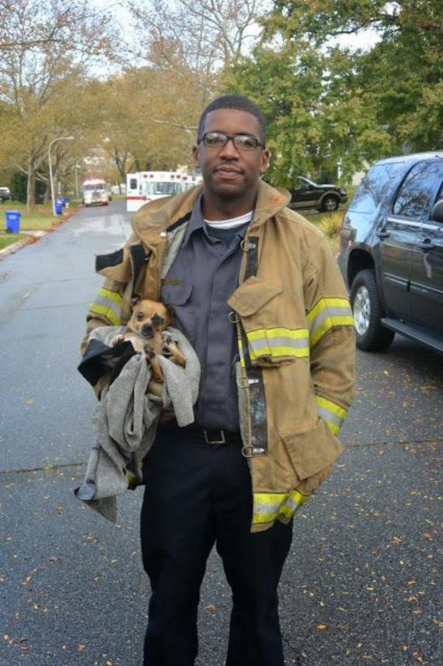 Otis and fellow chihuahua Mylo were rescued from a house fire in Bowie, Md. last week and were revived with oxygen by firefighters. Mylo was treated at a vet for two days and returned to his family. Officials ruled the fire an arson and arrested Julian Martin Massiah with the crime.