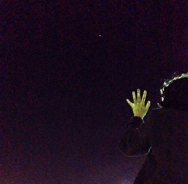 Reader Mike Lee’s daughter waves to the International Space Station from the top of the Westfield Wheaton Mall parking garage. Photo by