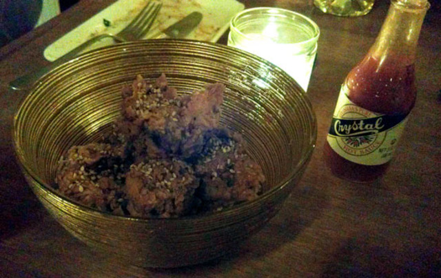 While the gnocchi is elegant, the pickle-brined fried chicken is the stuff of drunk gourmet snacking dreams. The savory exterior is unfailingly crunchy, giving way to moist, juicy morsels of chicken. A drizzle of honey and benne seeds — a kind of sesame seed — add a touch of nutty sweetness. In true Southern fashion, the dish is served with a tiny vial of Crystal’s hot sauce for a tangy kick.