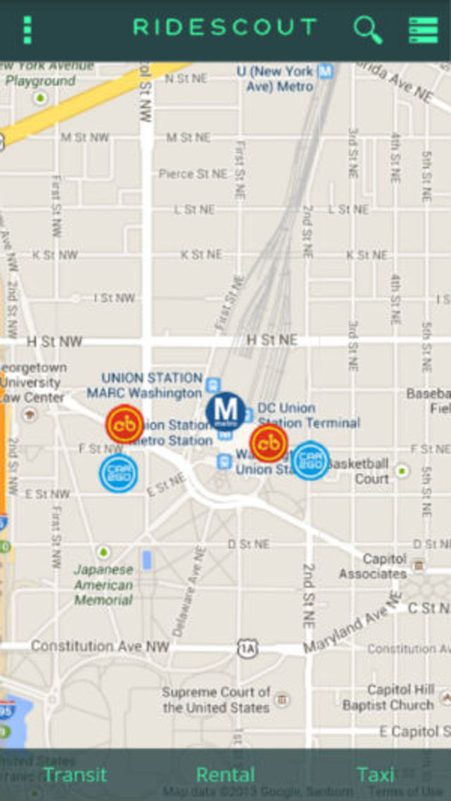 RideScout offerings near Union Station.RideScout, an app that aims to aggregate all your transportation options into one place, has officially launched in D.C.