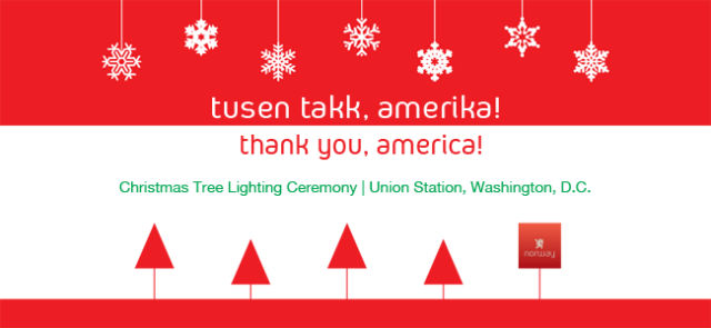 The Christmas tree at Union Station is an annual gift from the Royal Norwegian Embassy to the people of Washington, D.C. as a symbol of friendship between the United States and Norway. It also expresses Norway’s gratitude for assistance received from the United States during and after World War II.