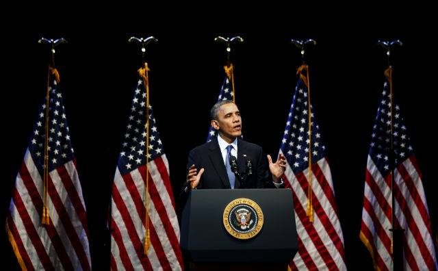 U.S. President Barack Obama speaks on economic themes. (Photo by Aude Guerrucci-Pool/Getty Images)