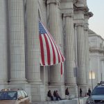 Photo by Sarah Anne Hughes.Hundreds of people gathered outside the Smithsonian’s Air and Space Museum this morning as part of a nation-wide protest in favor of higher wages for federally-contracted workers through an executive order.