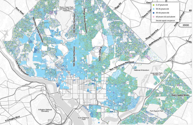 Also mapped is the city’s density, and a look at the changes in Columbia Heights and Mt. Pleasant.