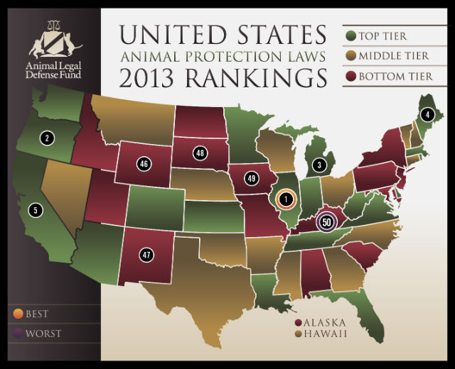 The Animal Legal Defense Fund is out with its annual ranking of the best places to be a pet in America. (Or, in a dark world, the best places to be an animal abuser.)