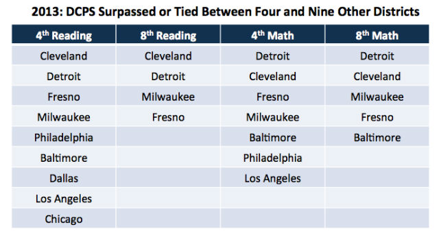 D.C. public schools saw greater gains in 2013 math and reading tests than 20 other urban school districts, according to numbers released today.