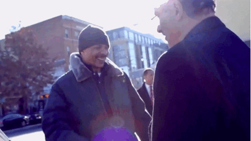 Before his speech, a video played that may or may not be his first TV ad, but is 100 percent for sure online. The commercial is your typical political ad: It shows Gray meeting with various D.C. residents—including Ben’s Chili Bowl co-owner Virginia Ali—in various iconic locations in the city’s various Wards. In the closing voiceover, Gray says “I’m proud to live in the District of Columbia, and I’m proud no matter where I may live in the city because it’s the place that people want to be.” It’s a short but sweet campaign ad, and its high point is definitely this glorious pound hug* with a constituent.
