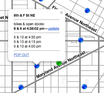 Zach Rausnitz, a Fierce Government editor who regularly makes cyclists’ lives easier, has created a new app that shows current dock conditions at Capital Bikeshare stations, as well as recent trends.