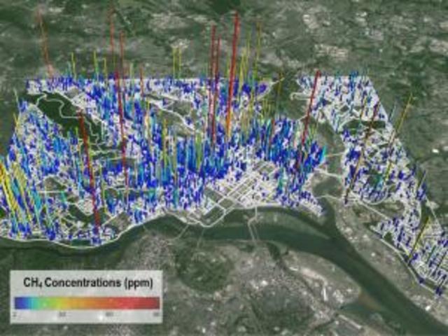 The average methane concentration observed in the leaks was about 2.5 times higher than in background air samples collected in the city. Methane levels in some leaks were as high as 89 parts per million, about 45 times higher than normal background levels.