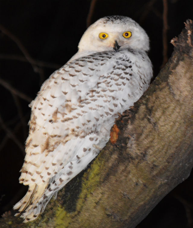 Nicholas Lund of the website Birdist, which is not affiliated with this one, photographed the Snowy Owl perched in a tree while commuters simply walked by last night. He said on Twitter the Owl hasn’t been “refound” today.