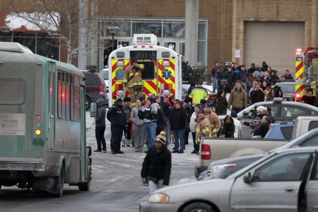 Police evacuate employees and patrons from the Columbia Town Center Mall after three people were killed in a shooting there January 25, 2014 in Columbia, Maryland. Police still do not have a motive for the shooting but believe the shooter has been killed. (Photo by Chip Somodevilla/Getty Images)