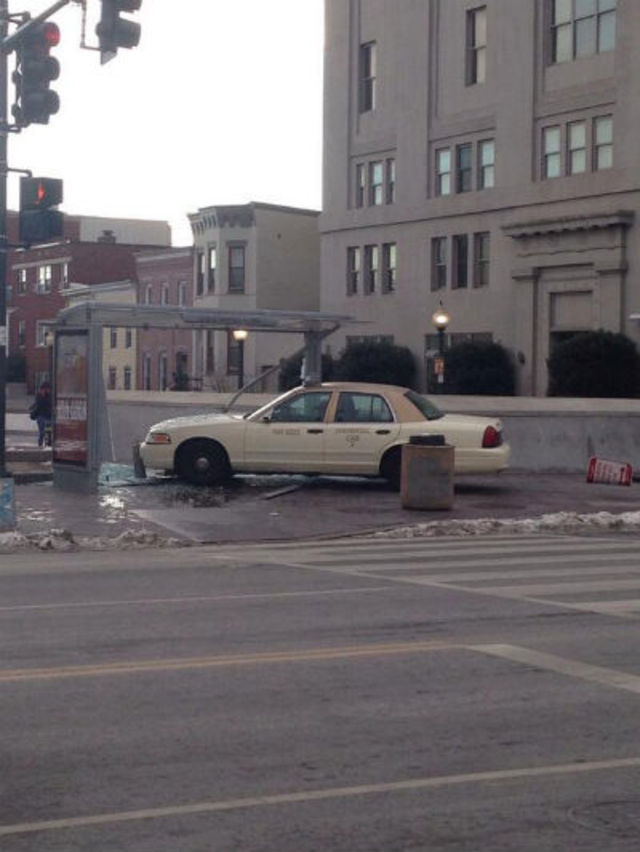 As photos for the scene show, the driver of the cab crashed through a Metro bus shelter controlled by the city. We’re waiting to hear back from the D.C. Department of Transportation about when it will be replaced.