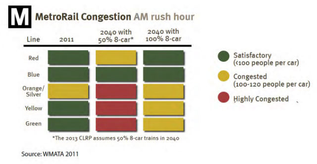 The TPB also assumed that a lack of funding commitments from Congress, the District of Columbia, Maryland, and Virginia for ongoing maintenance of the system beyond 2020 would result in diminished system safety and reliability. That would further limit the number of people who could or would use Metro to travel to and from work each day.