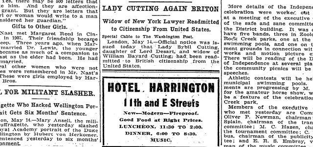 Here are two ads for the hotel from 1914, both of which tout the Harrington as “fireproof.”