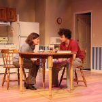 Pluto is a puzzle of a play, one that Dove orchestrates with ever-building intensity as the mystery unravels. A radio broadcasts news of a tragic school shooting at a local community college, although it’s not immediately clear how the events relate to the mother and son at the heart of the play as they go about their mundane morning routine—making coffee, unloading groceries, eating Poptarts—in a kitchen set that is perfectly ordinary, save for the unnerving protrusion of a cherry tree suspended from the ceiling.