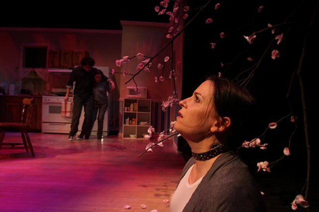 The cherry tree is only the first surreal object in a series of bizarre intrusions that threaten to disrupt the ordinary day that Elizabeth (Jennifer Mendenhall) and her son Bailey (Mark Halpern) are determined to maintain. The humdrum quality of the set quickly deteriorates, and by the end we are left with a (literally) hellish portal, walls sprayed with blood and a floor littered with bullet casings.