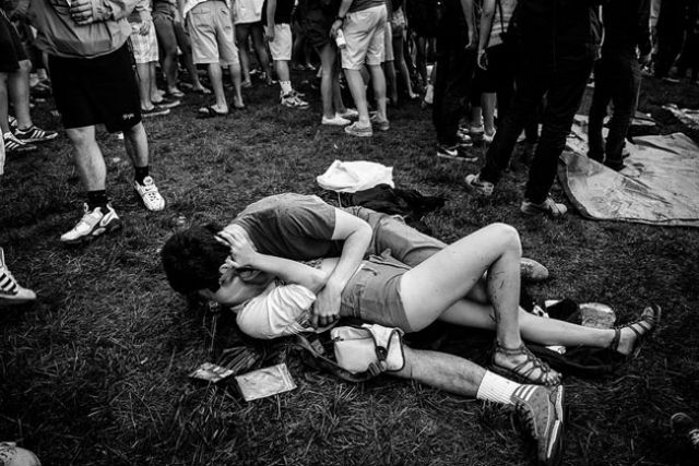 “Now, picture this,” he writes. “Torrential rain starts falling down, crowd starts freaking out, a sea of raincoats and umbrellas start to form and as I start running for cover, I see a couple who [couldn’t] care less about the fact that the Sweetlife Festival is about to become a big mud fest.”