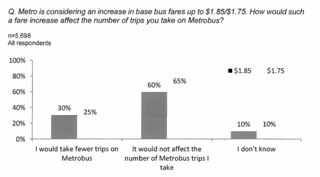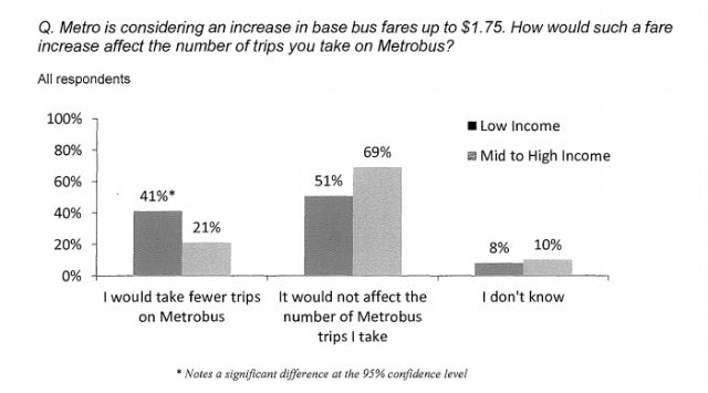 Just 25 percent of people who responded to the survey said an increase to $1.75 would cause them to take fewer bus trips.