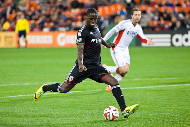 After a relatively uneventful first half, D.C. got their opener on a New England own goal. Just minutes before halftime, United left back Christian Fernandez came forward and sent a driven cross in from the end line. Revolution center back — and 2013 MLS defensive player of the year — Jose Goncalves was well-positioned to clear the ball from danger, yet somehow managed to volley the ball into his own net from the top of the six yard box.