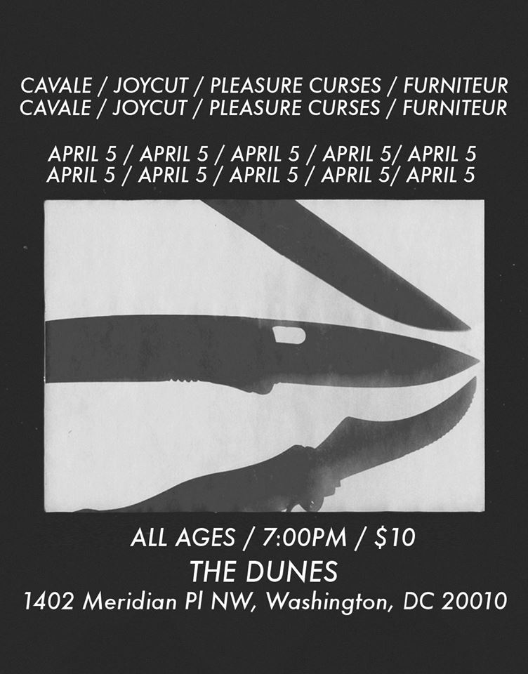 The Dunes—the all ages mixed media venue in Columbia Heights—books some of the most eclectic shows in the city. Case in point: this past Saturday, local experimental electronic/post-punk duo Cavale had their record release show, with D.C. bands Pleasure Curses and Furniteur also playing. Rounding out the show was JoyCut, an electronic band on tour from Italy.