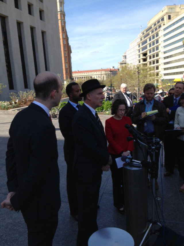 Photo by Matt Cohen.Standing in front of the D.C. Superior Court before members of the media this morning, Council Chairman Phil Mendelson, along with Councilmember Kenyan McDuffie (D-Ward 5) and attorneys Karen L. Dunn and Brian D. Netter, announced that the D.C. Council has filed a lawsuit against Mayor Vince Gray and the city’s Chief Financial Officer over the budget autonomy referendum.