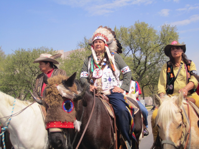 Indigenous leaders and ranchers from the Cowboy and Indian Alliance prepared to ride their horses from Third Street NW to an encampment set up on the Mall between Seventh and Ninth streets. Many will stay there until Sunday to urge President Obama and other officials to reject the pipeline.