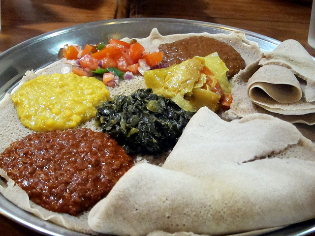 Vegetarian platter at Zenebach Injera (John Winder).
