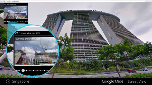 Via Google.A new Google Street View option is not so much a time machine, as some have described it, but a time capsule. Users will now be able to see images collected since 2007 at selected sites across the country. Just look for a clock symbol in the upper left hand corner.