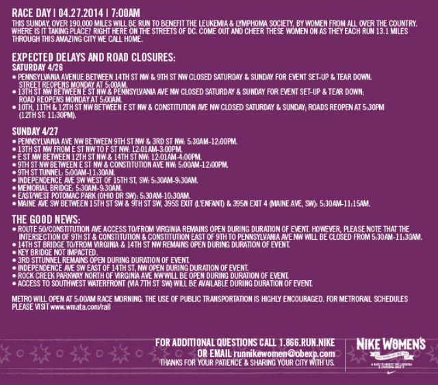 The Nike Women’s Half Marathon is coming to D.C. this weekend are so are road closures.