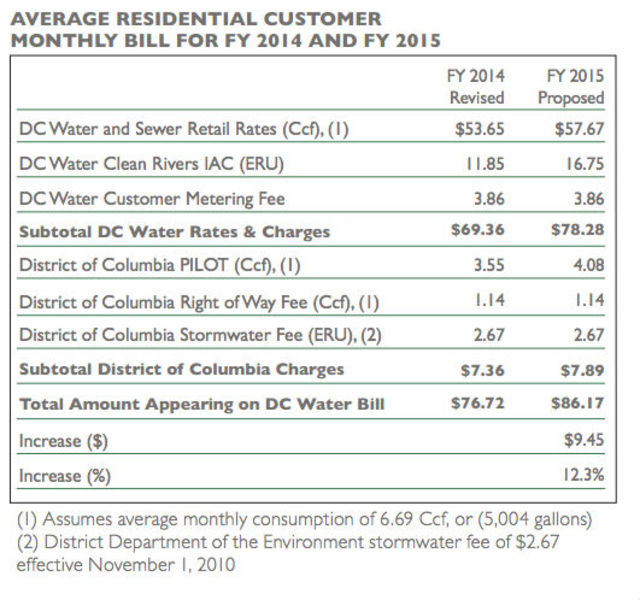 The DC Water Board of Directors, which will vote on the proposal in July, will hold a public hearing on May 14 at 6:30 p.m. Proposed rates can be seen here.