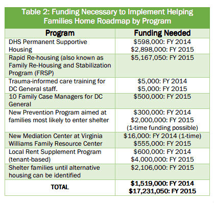 Helping Families Home lays out a plan through next spring that will create a “system that serves families appropriately with the goal of quickly connecting families with the right services, including emergency shelter if needed, when they need it, regardless of the time of year.” This includes providing year-round shelter, moving families out of shelter within 30 days, and improving data on how money is budgeted and spent. “Importantly, this roadmap identifies the funding needed in the fiscal year FY 2014 and FY 2015 budgets to achieve these goals,” the plan states.
