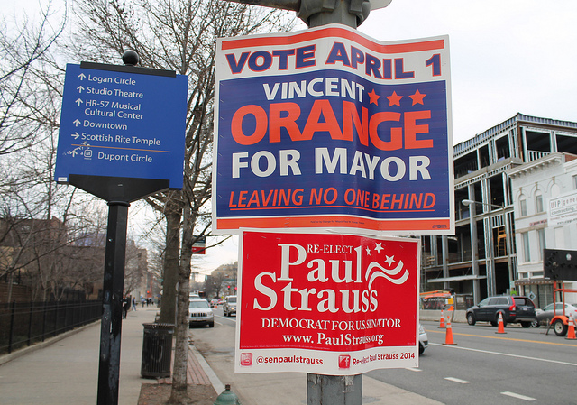 But if you’re tired of seeing a million Jack Evans for Mayor or Reelect Vince Gray signs scattered throughout, fear not, because today is the day candidates must dispose of all their campaign signs, or else face heavy fines from the Department of Public Works and the District Department of Transportation’s Public Space Office, which range from $150 for the first offense, to $2,000 for the fourth offense and beyond.