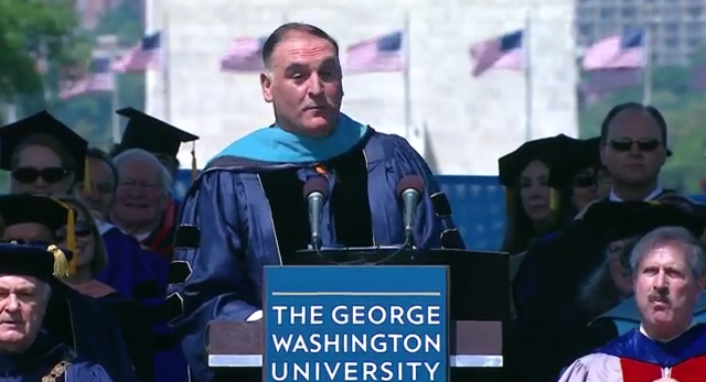 Despite many students not being that impressed by their school’s choice of commencement speaker, D.C. chef José Andrés (who also teaches a cooking course at the university) nonetheless spoke to George Washington University’s graduating class this weekend and his speech was, well, pretty damn good. Of course, it always helps to have the support of a bunch of celebrities.