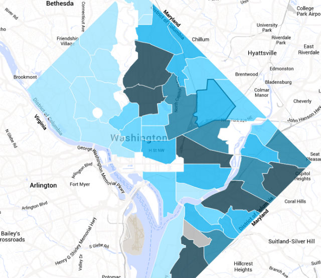 An interactive map created by DC Action for Children uses several indicators of neighborhood well-being and poverty to show how children live in D.C.