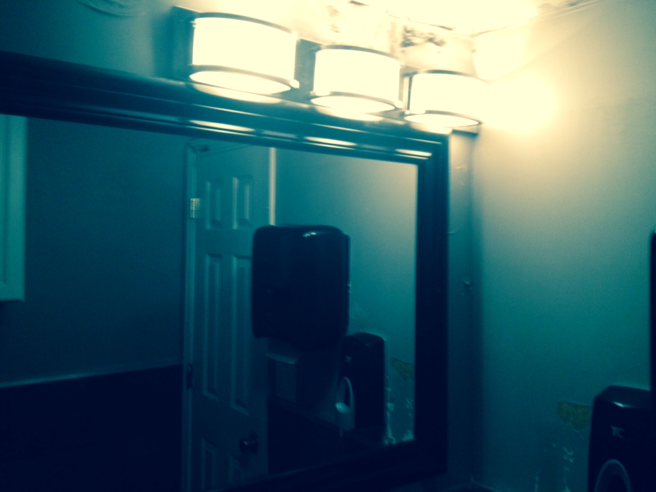 +2 for dramatic lighting: Like the bathroom shape, the lights about the mirror of Big Board’s bathrooms are not equal. The smaller one has a single dramatic lamp, while the other has three. Big Board’s bathroom is kind of stingy—the walls are cracked, and it could use a good paint job—yet the lights are strong/illuminating enough so that we nearly forget that we’re shitting* in a basement.