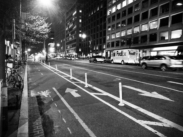The L Street cycle track—a protected 1.12-mile bike lane—was officially finished and opened for cyclists in late 2012. The cycle track, which runs from New Hampshire Avenue NW to 12th Street NW—separates cyclists from motorists with a three-foot buffer.