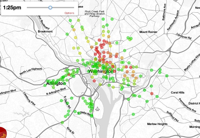 Are the Capital Bikeshare odds in your favor? That is, what are your chances of getting a bike at a certain station at a certain time? This tool from Code for DC, via Greater Greater Washington, can help solve the mystery.