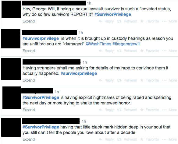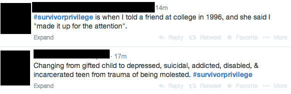 The column has prompted yet another painful and important hashtag, #SurvivorPrivilege, created by feminist writer Wagatwe Wanjuki. Woman and men are sharing their stories to show exactly what it’s like to earn the “coveted status” of rape victim.
