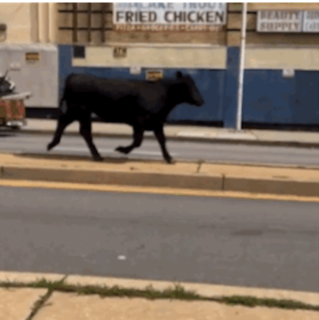 Eventually, police caught up to the bull and, well, lets just say he met his fate anyway. According to Baltimore police, the bull was shot at about 10:15 a.m. in the Mount Vernon neighborhood of the city. Police say the bull escaped from a slaughterhouse in west Baltimore before numerous calls came in from local businesses reporting that the animal was running loose in the street.