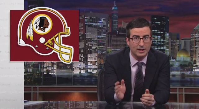John Oliver is the latest late-night TV host to take on Dan Snyder and his complete opposition to changing his football team’s offensive name. Working off the powerful Change the Name ad that aired during the NBA finals — a listing of names Native Americans are actually proud to be called — the Last Week Tonight host created his own spot defending seemingly indefensible opinions. For example: “Steven Tyler’s still got it”; “Camping is actually fun”; “Every flight needs more babies”; “Philadelphia is the cultural capital of America”: “Nancy Grace seems nice.”