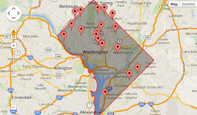 Beginning today, all of D.C.’s 19 spray parks will be open daily from 10 a.m. to 7 p.m. Below is a list of where they all are located and a map to help you find them.