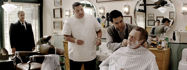 This bleached haze eventually lets in some color, but the film’s look is not helped by mostly colorless performances, both acting and vocal. John Lloyd Young won a Tony for his performance in Jersey Boys on Broadway, but if he a charismatic stage presence, it doesn’t show on film. His pipes aren’t much better – compare how he breaks up the opening line of “Sherry” with Valli’s smooth phrasing. The actors sing their parts themselves and they’re not bad, but they’re not a convincing Top 40 success. Young fares better in dramatic scenes, which means the fault must lie with Eastwood, who doesn’t get consistent performances out of his cast.