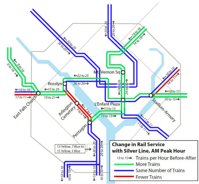 “I understand that this means a change for Blue Line riders and not all will find the change convenient,” Bowsersox responded. “It is worth noting that we are executing on a plan that was developed more than a decade ago when the Silver Line was planned/approved. The original plan called for Blue Line trains every 14 minutes. We were able to do a little better than that by extending Silver Line to Largo Town Center, rather than Stadium-Armory.”