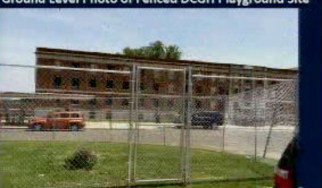 A fenced in area where children at D.C. General can play until a playground is completed.The city will spend approximately $450,000 to construct a playground on the grounds of the D.C. General homeless shelter.