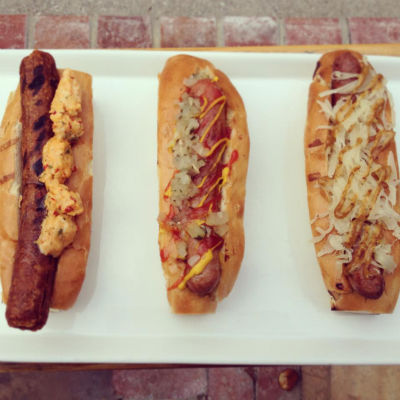 Via Vinoteca’s Facebook pageVINOTECA: The U Street restaurant offers several homemade options served on its patio, including the “Who Dat Doggy (boudin pork dog with grilled red onions and remoulade), Barbie Dog (chicken dog with BBQ, cheddar and apple), Plaza Dog (topped with ketchup/mustard/relish), the Frankfurter (topped with homemade sauerkraut and caraway mustard), and a spiced-up veggie dog.” I am a sucker for sauerkraut, but you can’t go wrong with these options. As a bonus, on Thursday nights through August, you can get a hot dog, glass of sparkling wine, chips and a pair of Vinoteca-branded sunglasses for $11. —Sarah Anne Hughes